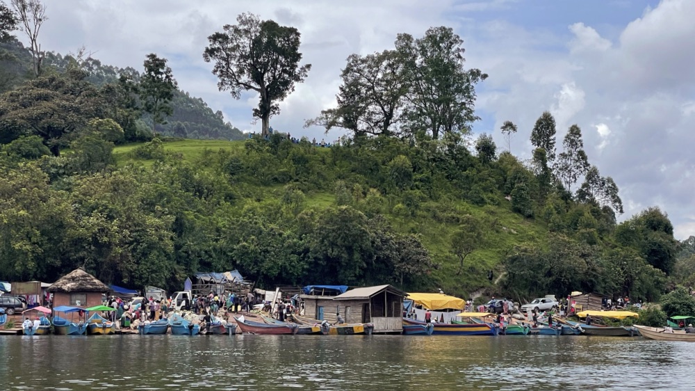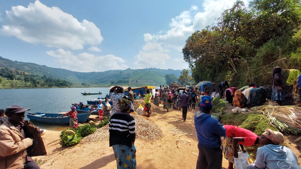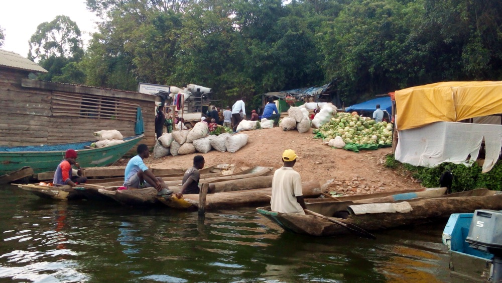 Most significantly, Rutinda hosts the twice-weekly market. On Mondays and Fridays, the lake becomes a traffic jam of dugout canoes — some people from faraway places start paddling real early — along with motorboats and dusty pickups from Kabale. Villagers arrive with potatoes and beans, while townies show up with piles of pre-loved clothes and shoes.
